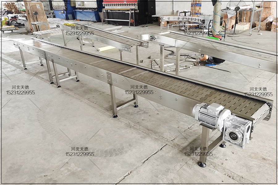 鏈板輸送機(jī)歡迎來(lái)電定制河北天德雞胸肉油炸流水線鏈板輸送機(jī):15231229955 網(wǎng)址:http://www.qicaishiye.cn/
