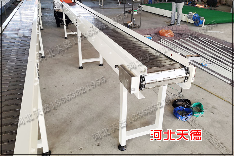 1)板鏈式裝配流水線(鏈板輸送機)特點:承載的產品比較重,和生產線同步運行,可以實現產品的爬坡;生產的節拍不是很快;以鏈板面作為承載,可以實現產品的平穩輸送。