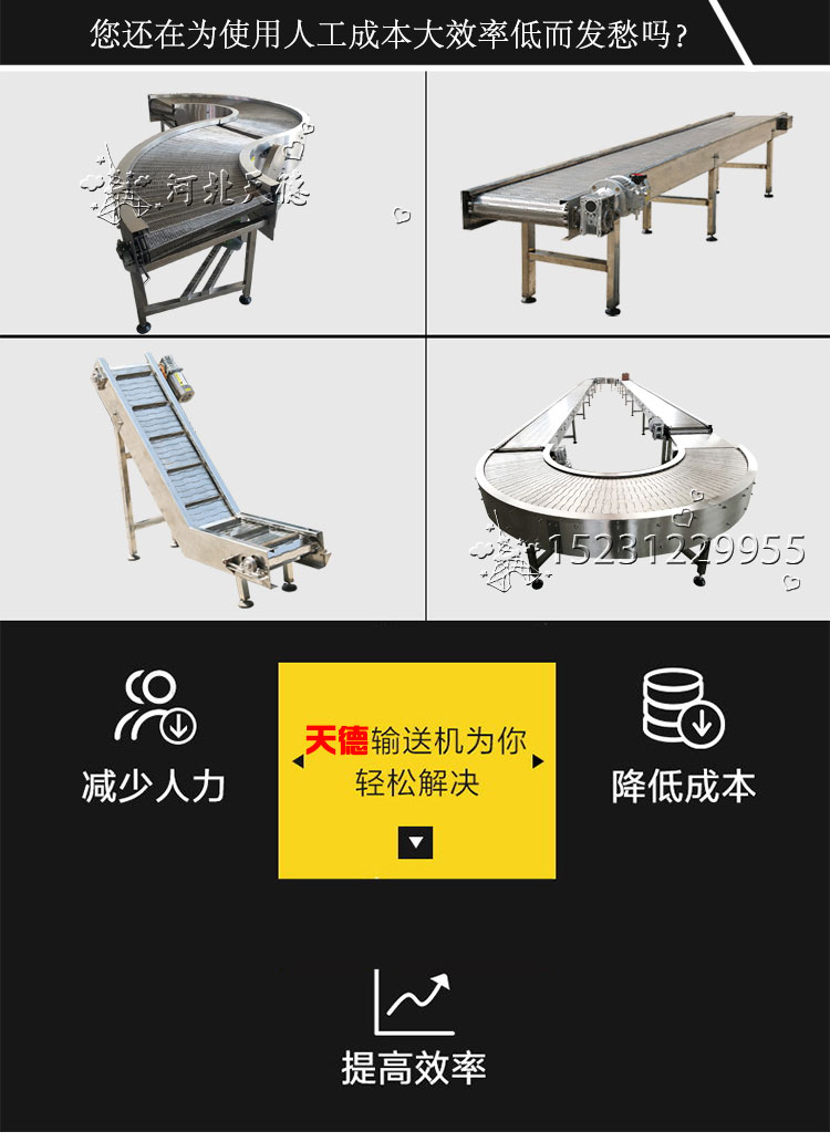 4.采用不同材質的網帶可以起到不同的輸送作用并且滿足不同環境的需要,能夠滿足環境溫度零下-30度至120攝氏度之間的輸送要求。