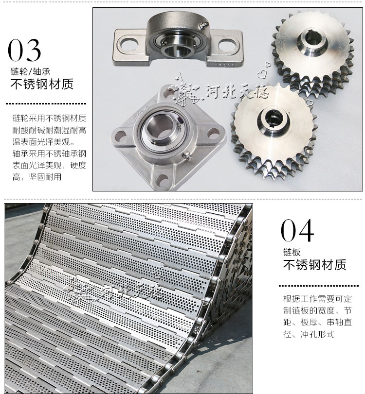 應用行業有:食品加工、速凍加工、設備組裝、金屬件輸送、機床排屑,況且在這些行業中對鏈板輸送機的使用型號也不一樣。平頂鏈板式輸送機適合高速輕型產品輸送機;折彎鏈板式輸送機適合重型、體積大產品輸送;合頁鏈板式輸送機適合稍重、細小產品輸送。大家在購買時一定注意要根據自己產品來選型。