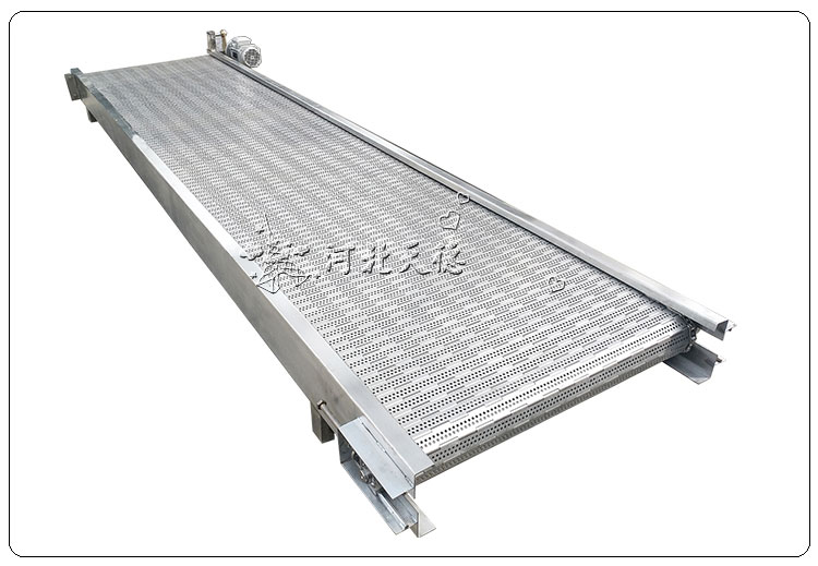 作為合頁鏈板輸送機使用的大市場就是速凍領域,速凍領域中果蔬速凍可以說是多的使用行業。果蔬速凍所使用的鏈板式輸送機規格型號比較常規,全部304或316不銹鋼結構;節距31.75mm或38.1mm;厚度1mm~1.5mm;寬度300mm-900mm;一般沖孔3mm~4mm,這種規格的鏈板輸送機適應果蔬的輸送和速凍作業。