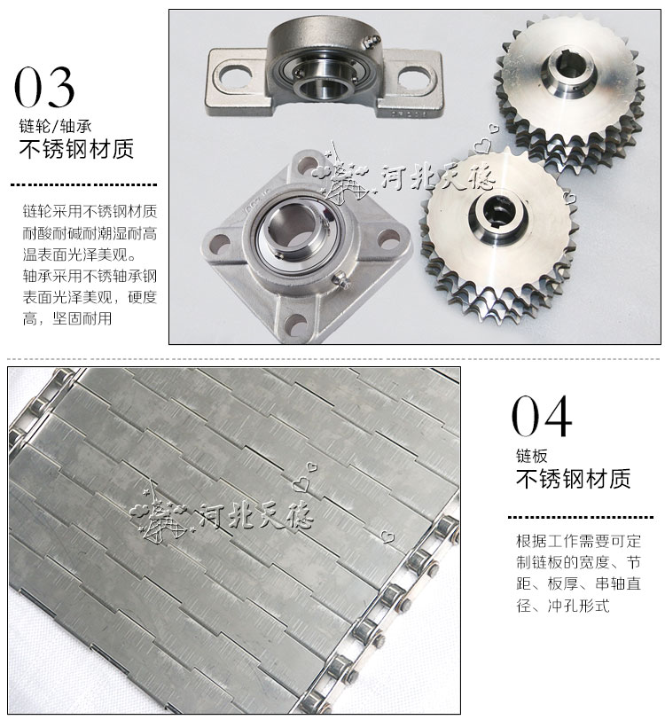 2.鏈板有不銹鋼和工程塑料等材質,規格品種繁多,可根據輸送物料和工藝要求選用,能滿足各行各業不同的需求。
