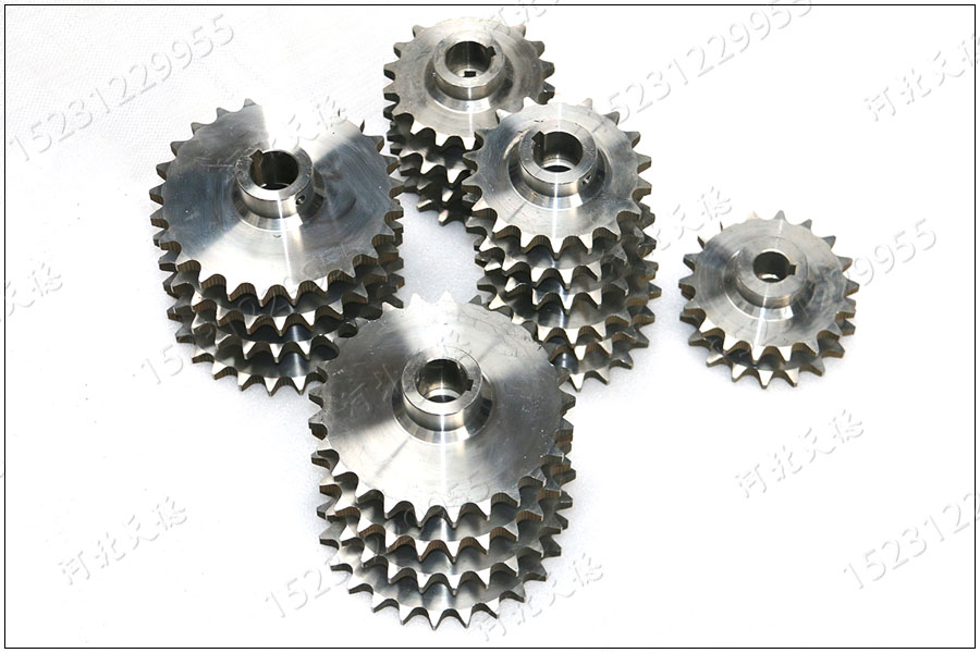 鏈輪是由鏈條驅動的,通常在英制單位。有單行、雙行和多行。適用于低速、重載、高溫等工況。與齒輪相比,它可用于雙軸中 心。