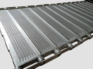 人字網帶的特性是網孔小透氣,網孔可以做到1mm左右,人字網帶有硬中帶軟,軟中帶硬,有很好的耐重物沖擊的能力,輸送金屬物品時,金屬物品掉落在人字網帶上噪音小回彈能力強也不容易變形。
